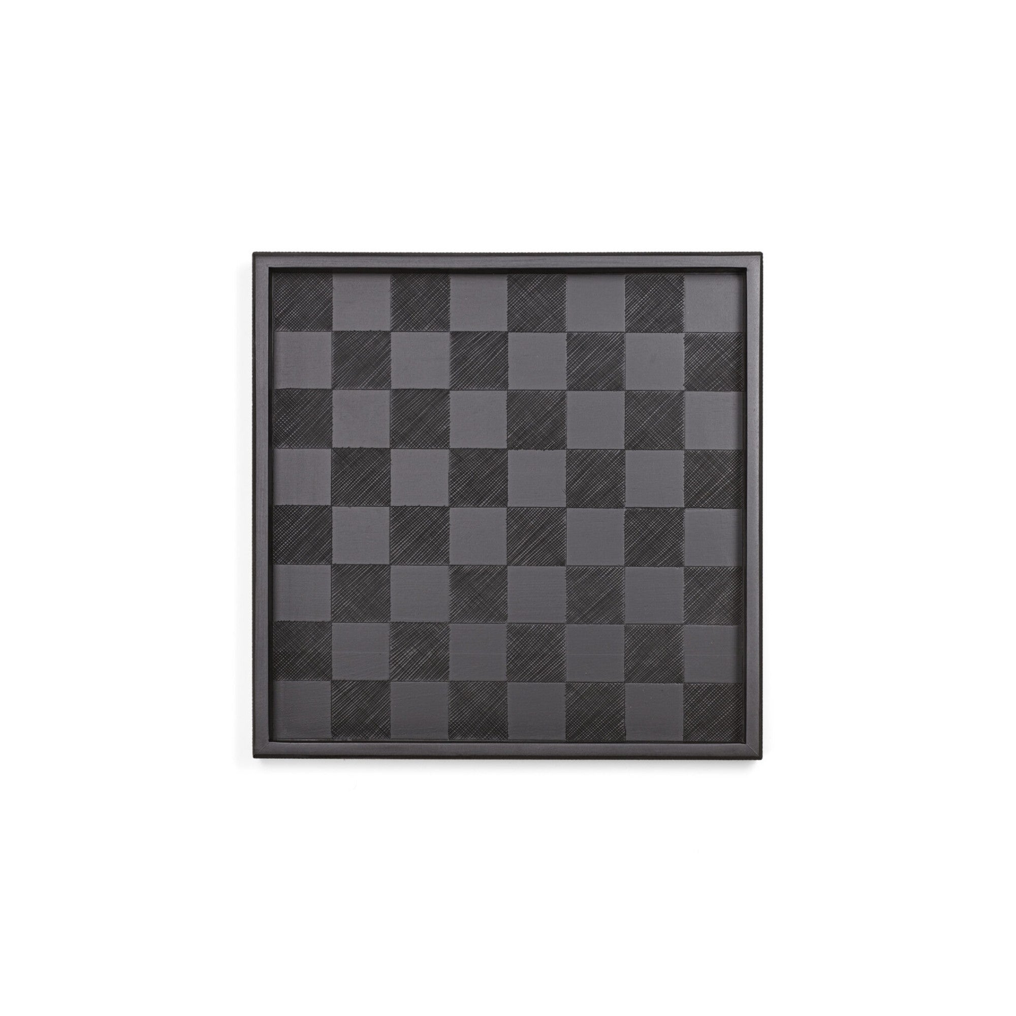 Kioko Trays showcase minimalist elegance and fine craftsmanship. One model features a hand-carved checkered interior that doubles as a chessboard, while the simpler version highlights a central carved square. Both have intricately carved exterior walls, combining functionality with refined, artisanal beauty.