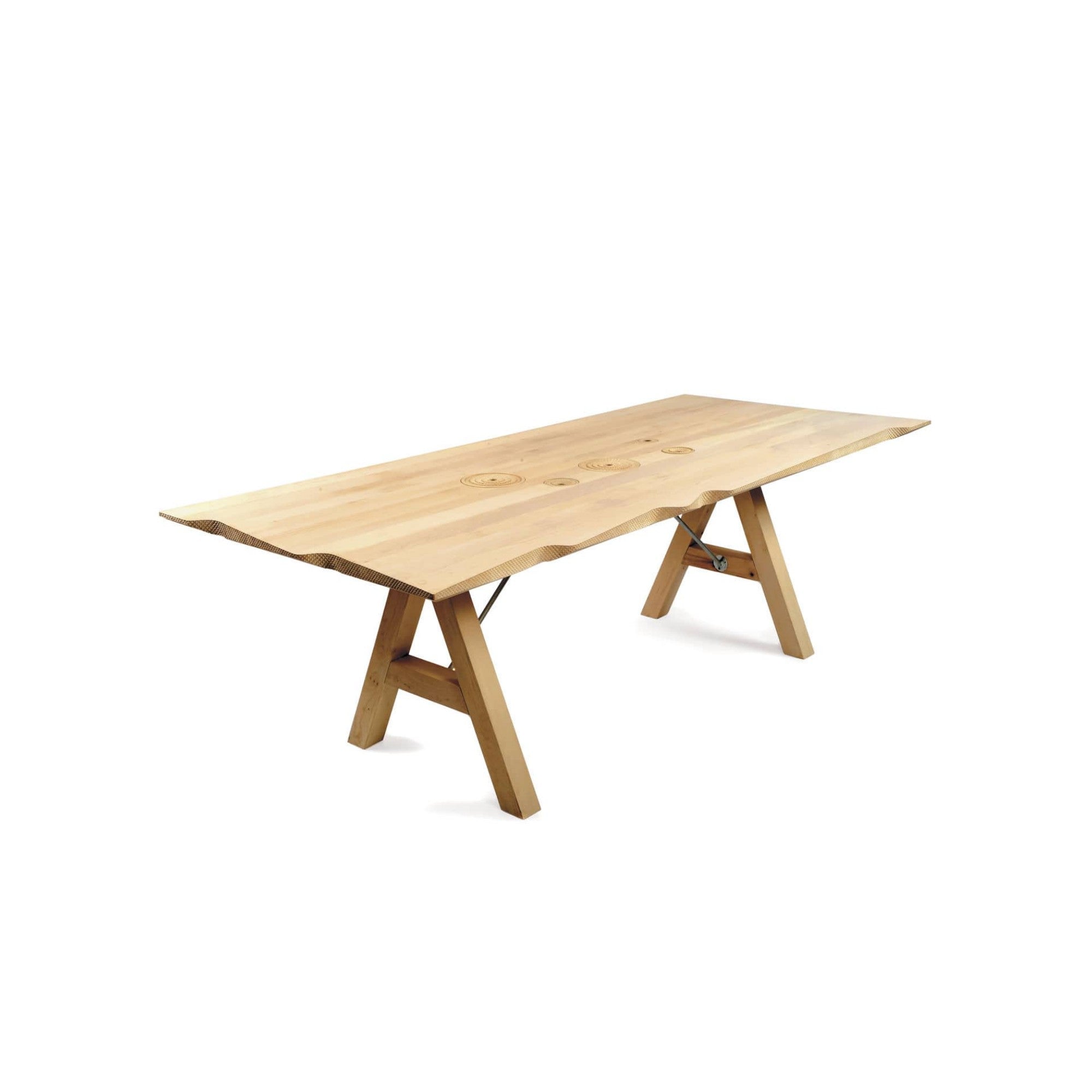 The Wave Table by Zanat features twisted, hand-carved edges inspired by the flowing Neretva River in Konjic. Echoing the natural beauty of live-edge timber, this versatile table combines sculptural artistry with functionality, serving equally well as a striking dining table or a refined desk.